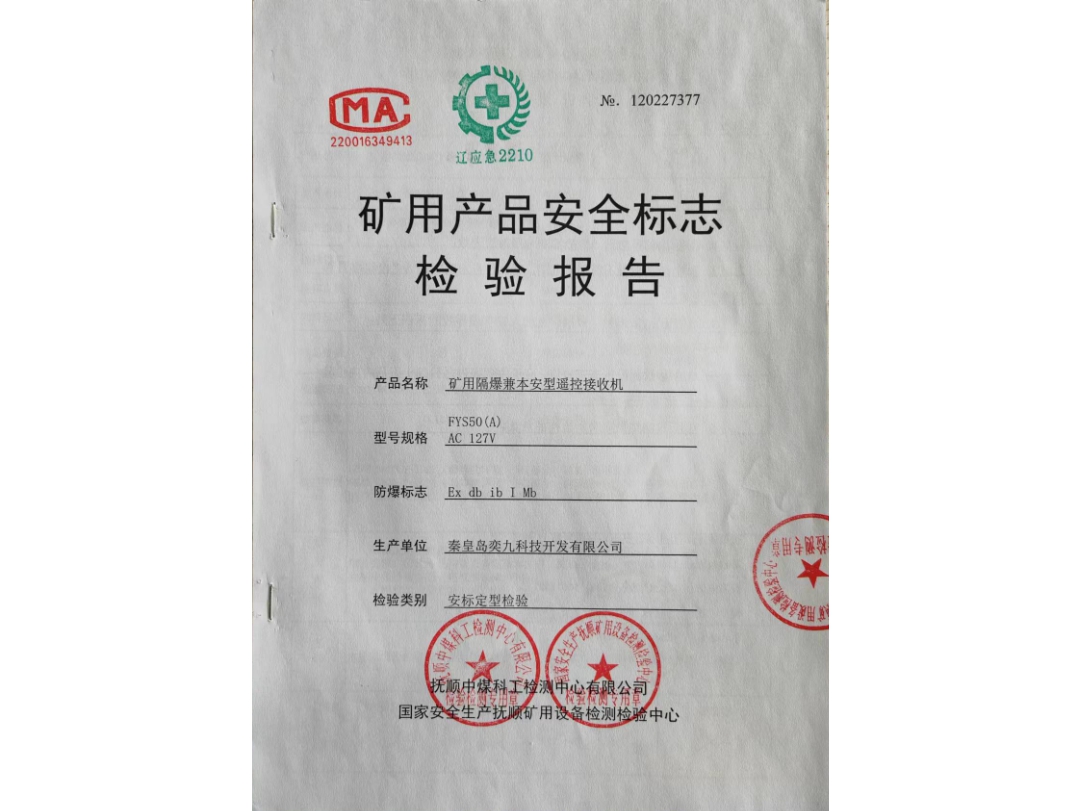 礦用產(chǎn)品安全標(biāo)志檢驗(yàn)報(bào)告